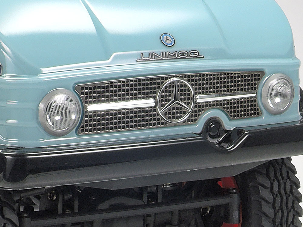 The Mercedes-Benz Unimog name is an acronym of the German "Universal-Motor-Ger?t"; this R/C model assembly kit recreates the 406 Series vehicle that was a hit since its debut in 1963. A polycarbonate body recreates the distinctive form with curved hood and round headlights, with a separate metal-plated depiction of the front grille for extra realism, plus separately molded side mirrors and air intake.