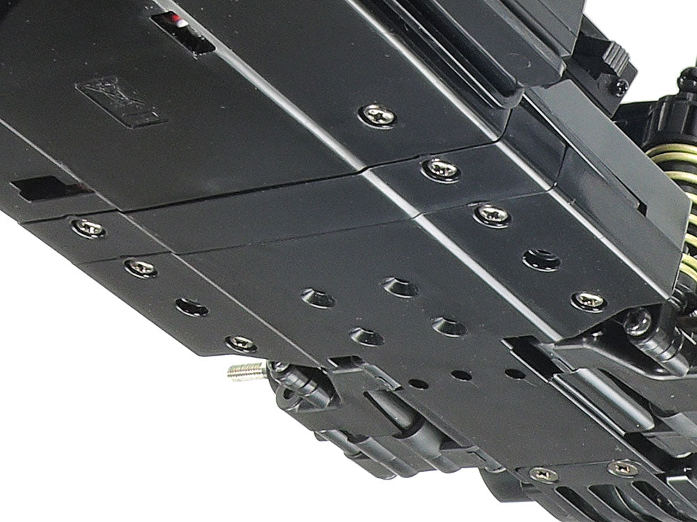 ★Length: 390mm, width: 176mm, height: 114mm ★Wheelbase: 225mm ★Tread (front/rear): 138mm ★Rear-motor, rear-wheel drive ★3-bevel differential gear ★3-piece steering tie-rod ★4-wheel independent double wishbone suspension ★Front/rear friction dampers ★Gear ratio = 5.8:1 (using kit-standard 20T pinion) ★Tire width/diameter (front/rear): 25mm/59mm ★Type 540 motor ★Requires an Electronic Speed Controller (sold separately)